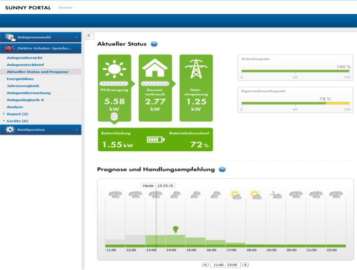 Übrigens: Unsere bereits installierten Speichersysteme unterliegen einer ständigen Übrwachung über das SUNNY PORTAL von SMA.
